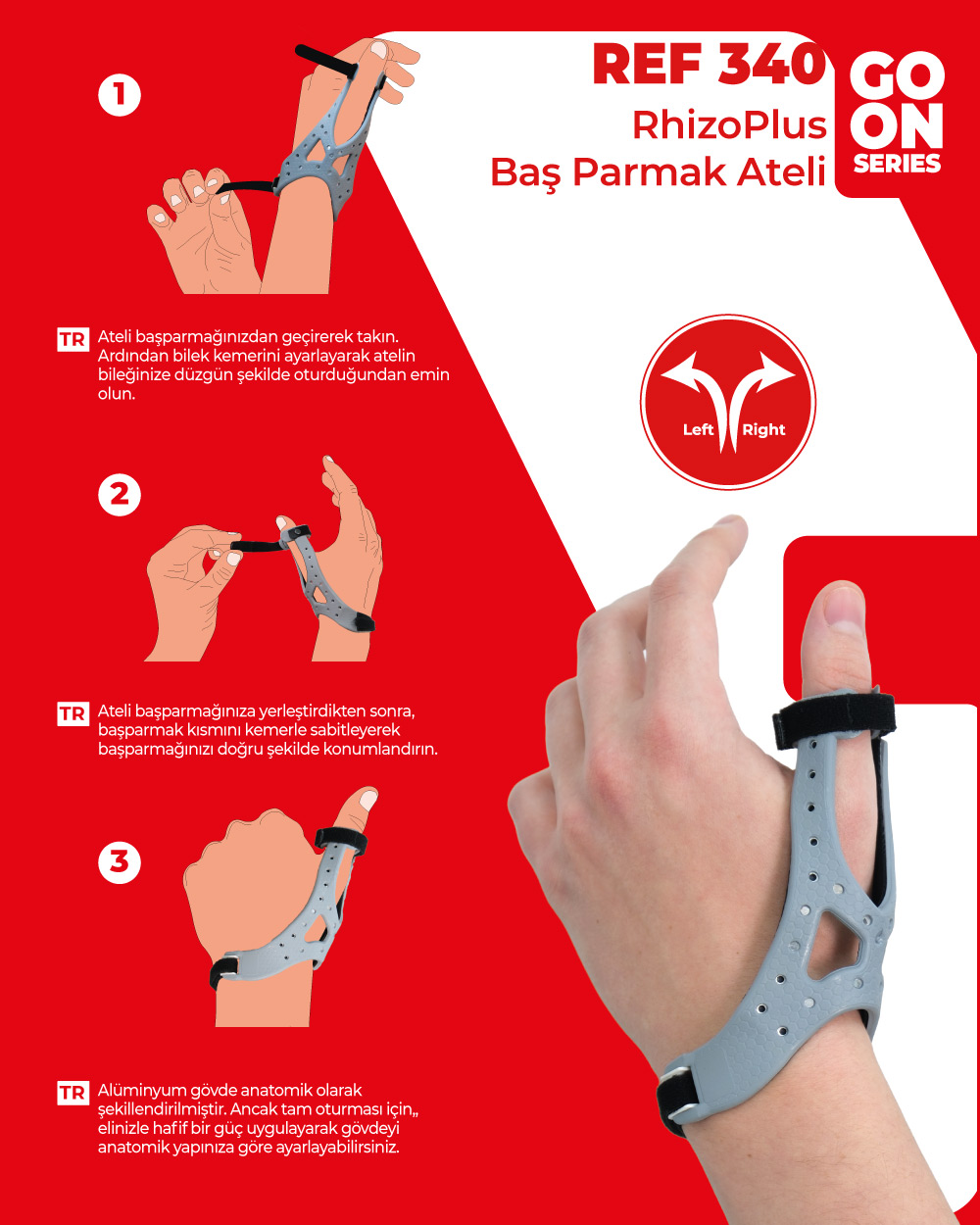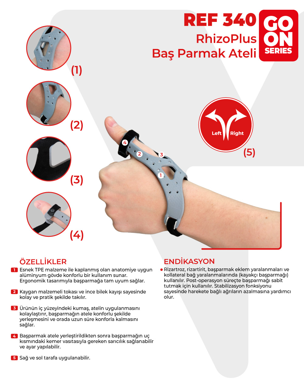 Rizartroz, rizartirit, başparmak eklem yaralanmaları ve kollateral bağ yaralanmalarında (kayakçı başparmağı) kullanılır. Post-operasyon süreçte başparmağı sabit tutmak için kullanılır. Stabilizasyon fonksiyonu sayesinde harekete bağlı ağrıların azalmasına yardımcı olur.